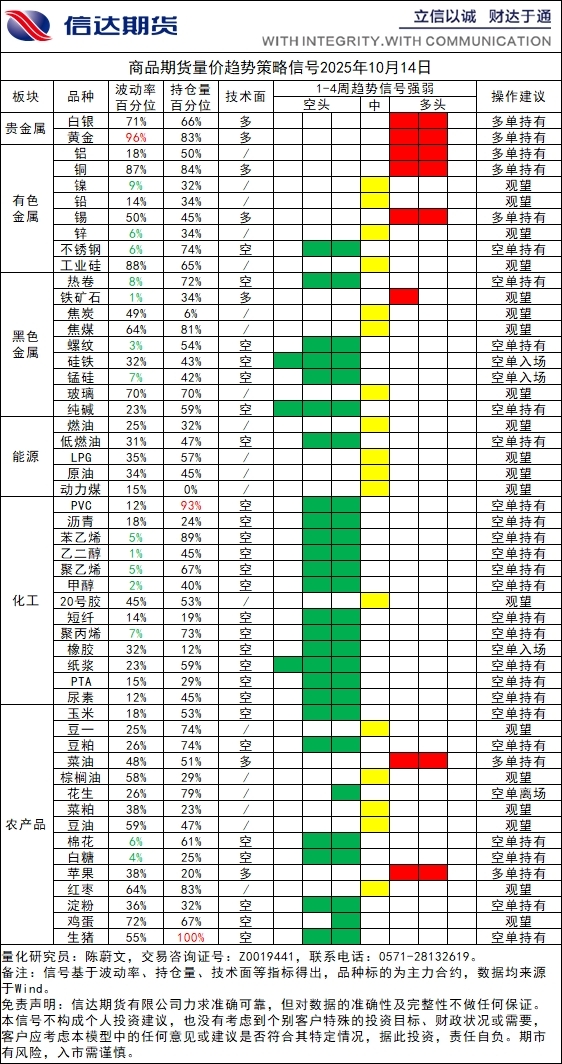 商品期货量价趋势策略信号20251014