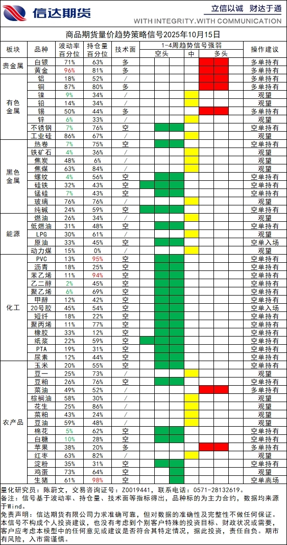 商品期货量价趋势策略信号20251015
